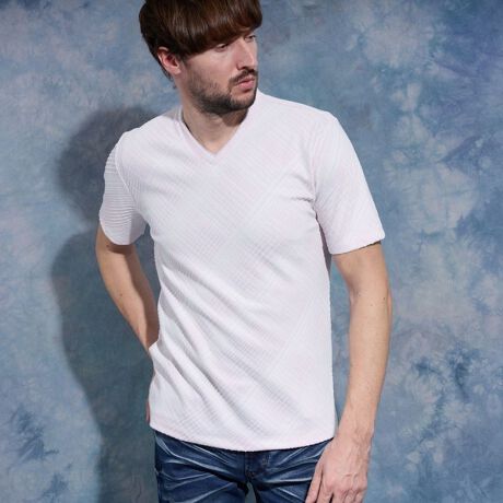 バイアスブリスターチェックJQVネック半袖プルオーバー