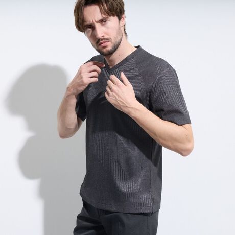 様々なスタイルに合せやすい浅めのVネックとサイドスリットがポイントのシンプルな半袖カットソーです。