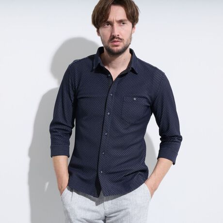 衿端にワイヤ−を仕込んだショートレギュラーカラー7分袖シャツになります。