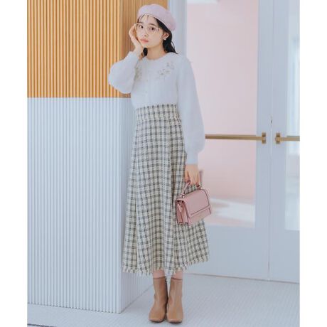 スタイリングのアクセントにおすすめのフリンジ付きチェック柄スカート【Design】・裾にフリンジをあしらったロングフレアスカート。・表面感のあるナチュラルな風合いのチェック柄は、秋冬らしいシーズンムードを高めてくれます。・甘めなフェミニンスタイルからカジュアルな大人っぽコーデまで、幅広いスタイリングで活躍!・ベルト幅を広めにしているので、ニットなどボリュームあるトップスをウエストインしても腰回りをすっきり見せてくれます◎・フレアシルエットがレディ感を演出してくれ、裾のフリンジと相まって表情豊かな仕上がり。・ウエストバックはゴム&レースアップ仕様になっており、お好みに合わせて調整が可能です。・左ファスナー仕様。【Fabric】・表面感のあるチェック柄生地を使用。・ハリ感のある裏地付き。・ホワイト、ブラックの2色展開となります。【Care】ドライクリーニング