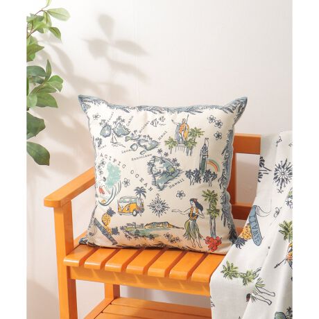 [型番:30532618]ノスタルジックなハワイの風を感じる、レトロなハワイアン柄のクッションカバー。どこか懐かしさのあるヴィンテージ調のプリントが、空間にやさしく馴染みながらも、南国らしい華やぎをプラスします。【素材】綿100%【デザイン】賑やかで楽しい雰囲気のレトロなハワイアン柄のプリントです。【ポイント】ひとつひとつが楽しめる細部にわたるイラストが魅力的。明るいハワイアンテイストがお部屋をさわやかに演出します。