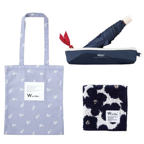Wpc.の日傘、トートバッグ、ハンカチの3点セットが入った大変お得な数量限定のセットです。