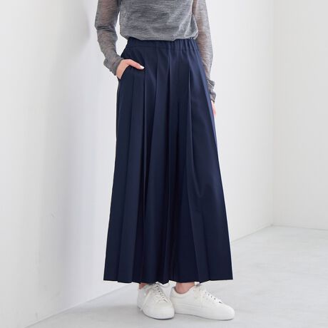 フロントを幅広のプリーツにしてスカート見えするキュロットデザインに仕上げています。
