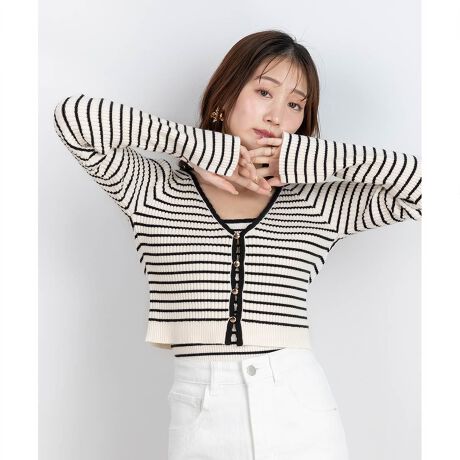 コンパクトな着丈と肩から覗く程よい肌見せ感で華奢な印象に仕上げてくれる一着です。