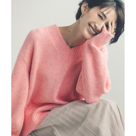 全7色から選べる、ヘアリーな素材感のVネックニット