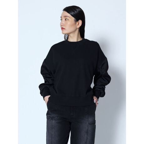 トレンドのシャーリングデザインをLASUDらしい1着に落とし込んだデザイントップス。