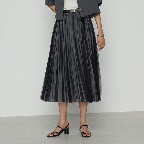 トリコット面を表にするとチュール面とは全く違うプリーツスカートに見えるので、新鮮な印象で着られます。