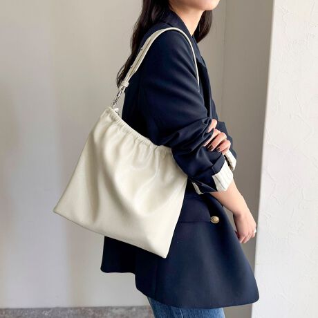 ・ギャザーデザインがポイントのトレンド感のあるワンハンドルバッグです