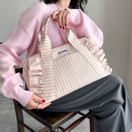 ・フリル×ストライプデザインが女性らしいトートバッグです