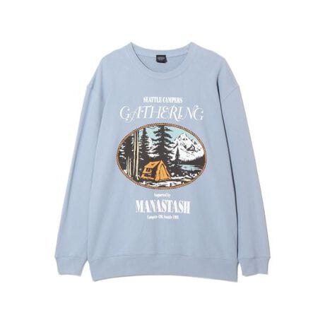 MANASTASH/マナスタッシュ/CREW SWEAT CAMPERS GATHERING/クルースウェット キャンパーズギャザリング・10オンスの裏パイルのスウェット・ヴィンテージのキャンプ場のTシャツをオマージュしたグラフィック・グラフィック=【LAIDBUG(木内俊文)】【MANASTASH/マナスタッシュ】