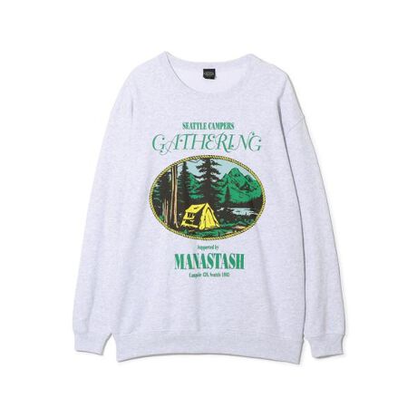 MANASTASH/マナスタッシュ/CREW SWEAT CAMPERS GATHERING/クルースウェット キャンパーズギャザリング・10オンスの裏パイルのスウェット・ヴィンテージのキャンプ場のTシャツをオマージュしたグラフィック・グラフィック=【LAIDBUG(木内俊文)】【MANASTASH/マナスタッシュ】