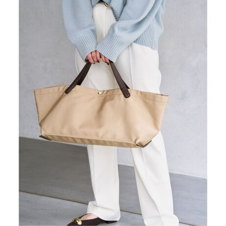 トレンドの横長シルエットトートは、2つのデザインを楽しめるよう中にフックを付けています。