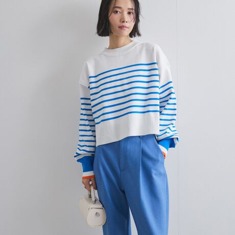 ミニマルな印象の配色アクセントのパネルボーダーニット。
