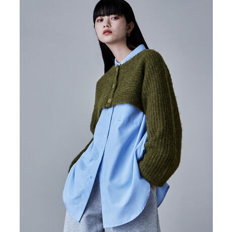 ころんと大きめボタンの前開きデザインとスタイルアップ効果が魅力のショート丈で、新鮮度の高いスタイリングへと導きます。