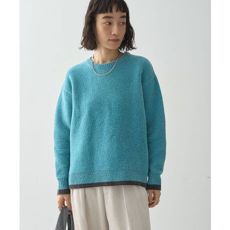 もっちりした厚手編みのニットが冬でも暖かい着心地を叶えるプルオーバー。アクセントの配色ラインがカジュアルながらも、程よい光沢感のある素材が上品な印象をプラスします。ご自宅の洗濯機で洗えるイージーケアなのも嬉しいポイント。長すぎない丈感で様々なボトムスと合わせやすく、オン・オフ問わず合わせていただけるおすすめのアイテムです。透け感[なし]