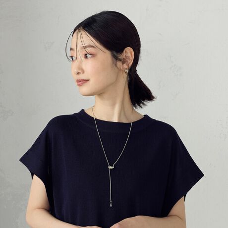 襟ぐりのあきやトップスのデザインに合わせて長さが変えられるのがポイントです。