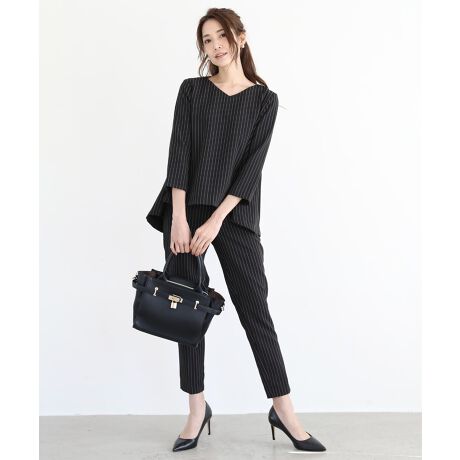 結婚式やお葬式などの冠婚葬祭からオフィスカジュアルまで使える便利なセットアップです。
