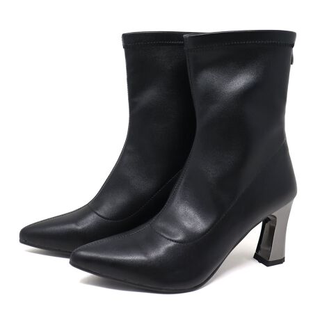 フィット感のあるストレッチ素材で履きやすいメタルヒールがポイントのポインテッドブーツ!