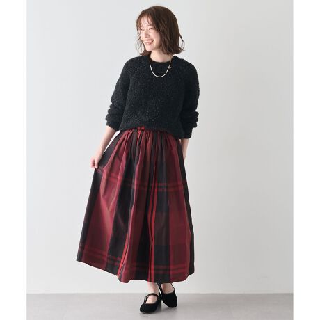 ・大きめのチェック柄が目を惹くスカート・ウエストゴムで穿き心地も良く、冬のイベントスタイルにもおすすめ・ふんわりとしたシルエットで、腰回りも自然にカバーしてくれる