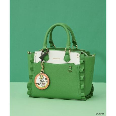 ◇& chouette(アンドシュエット)の《推し事バッグ》クリアポケット付きぬいぐるみバッグ「グーフィー」「グーフィー」の元気いっぱいで、のんびり屋さんのイメージをグリーンのカラーとリンクさせた、「グーフィー」を連想させるバッグ。元気いっぱいのキャラクターアートをチャームタグや型押しデザインに施し、「グーフィー」の世界観をたっぷり感じるバッグに。チャームタグに施された「グーフィー」の帽子をイメージしたグリーンのワンポイントカラーにも注目。★推し活をディズニーキャラクターと一緒に楽しむ★アンドシュエットの推し事シリーズからディズニーキャラクターバージョンが登場!全9キャラクターをイメージしたカラーバリエーションとチャームタグやバッグのサイドにデザインされた型押しアートに大注目♪▼機能性クリアポケット部分はマチがしっかりあるのでぬいぐるみや缶バッジ、アクリルスタンドやキーホルダーなどの推しのキャラクターグッズを入れることができます。身長12cm×幅7cm×厚み7cmくらいの子であれば2人一緒のお部屋に入ることも◎クリアポケット内部の缶バッジ等を取り付ける台はアレンジしやすいよう、厚手の素材になっています。バッグ本体とスナップボタンで固定されており、簡単に取り外してアレンジすることが可能です!小さく見えて500mlのペットボトルを寝かせて収納できる容量も確保!クリアポケット部分だけでなくかわいいコスメやポーチなどでバッグ全体を推しキャラ尽くしに♪ショルダーベルト付きなので2wayで使用可能です。バッグ正面右側に付いているDカンにはキーホルダーやチャームを付けることができ、推しのアイテムでアレンジにも大活躍◎自分だけのオリジナルバッグでお出掛けを楽しんで。アレンジクッションサイズ(最大値):幅18cm/高さ16cm