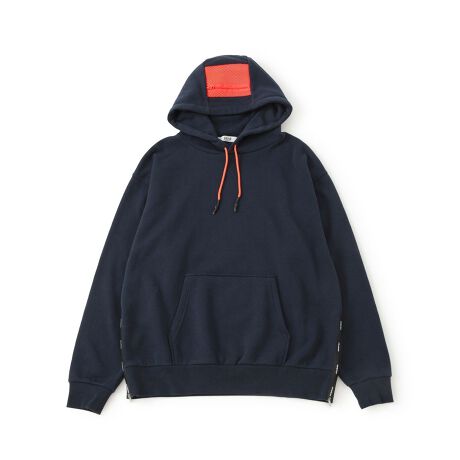裏起毛とメッシュ素材を組み合わせた、スポーティーなデザインが特徴的なフーディー。