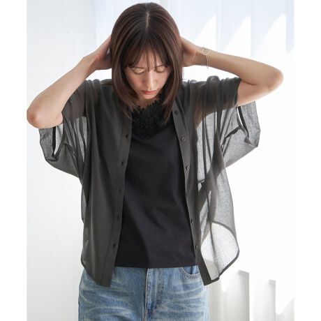 やわらかなシアー素材と、コットンライクな風合いが魅力のドルマンブラウス。