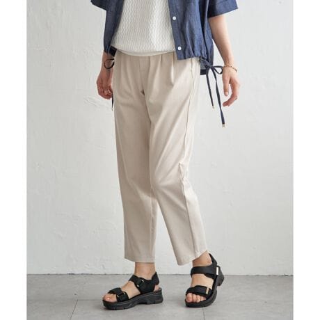 ひんやりとした冷感素材が心地よく、蒸し暑い日も快適に過ごせるテーパードパンツが登場!
