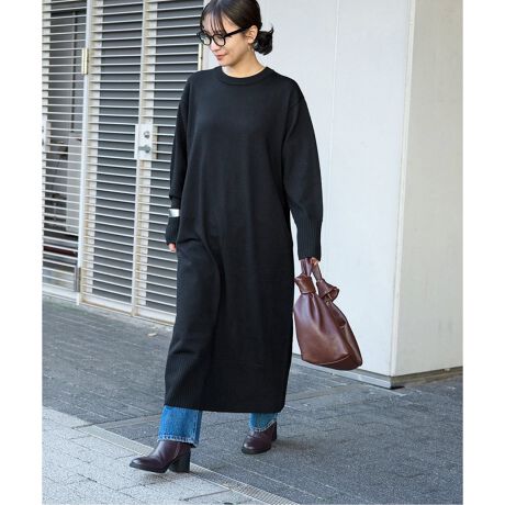 クルーネックマキシニットワンピース