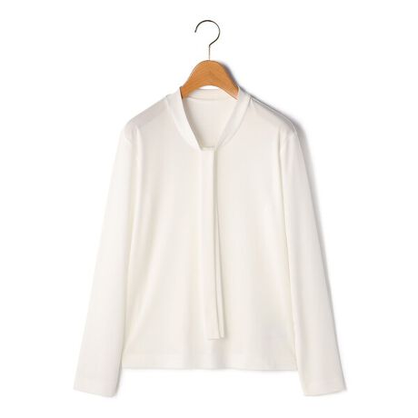 ソフトでスムースな肌触りの生地で仕立てた、着心地抜群の長袖カットソー。フロントのボウタイがスタイリッシュなデザインアクセント。オン・オフ問わず着こなせる、きちんと感のあるエレガントなデザインが魅力です。お手持ちのボトムに合わせるだけで、シックなお出かけコーディネートが完成します。