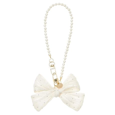 繊細なラインストーンを散りばめた立体リボンが華やかなストラップ。