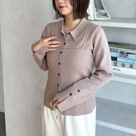 ニットビスチェはお持ちのシャツやTシャツとレイヤードさせても可愛く着こなせます。