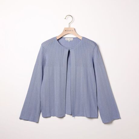 [型番:72253180251]軽やかな雰囲気で着こなせる、上部に透かし編みをあしらったシャインニットカーディガン。首もとフック仕様、さらりと羽織れるよう見頃や袖にゆとりを取り入れています。ストライプ柄の編み地もポイントに。シンプルな中にもこだわりを感じるアイテムです。※商品画像はサンプルを使用しているため、実際の商品と色味などの仕様が異なる場合がございます。予めご了承ください。model:T.166/B.80/W.58/H.88着用サイズ:38