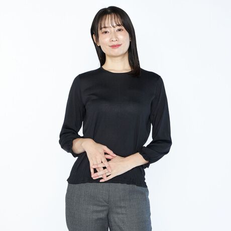 [型番:72253280252]袖口と裾にシャーリングをあしらい、大人フェミニンなディテールを取り入れたシャインニットプルオーバー。表情を明るく見せてくれる上品な光沢素材でさりげない華やかさを演出。手首の見える袖丈がスタイリングを軽やかな雰囲気に仕上げてくれるアイテムです。※商品画像はサンプルを使用しているため、実際の商品と色味などの仕様が異なる場合がございます。予めご了承ください。model:T.166/B.80/W.58/H.88着用サイズ:38