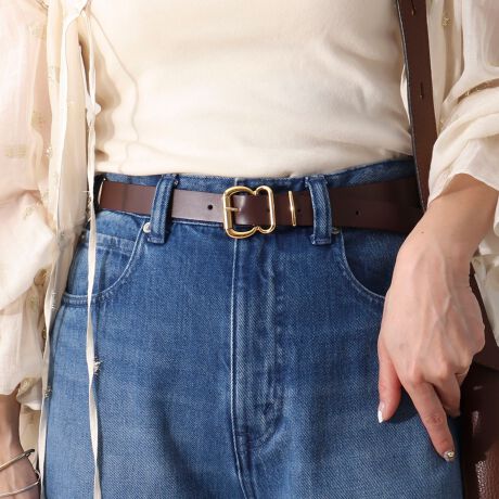 ・ゴールドのダブルリングがラグジュアリーな雰囲気を醸すレザーベルト