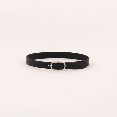 ・太めのレザーに、存在感のあるオーバル型のシルバーバックルがポイント