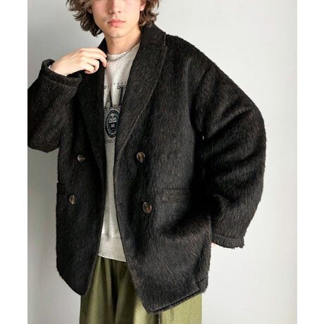気軽に羽織れる大人のアウター。ミックスシャギーダブルジャケットコート(ミドル丈)