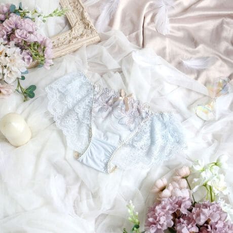 後身生地は総レースになっており、伸縮性のあるレースが肌に心地よくフィットします。足口にはゴムを使っていないので食い込まず、少しゆとりをもった履き心地です。ボトムスへもショーツラインが響きません。