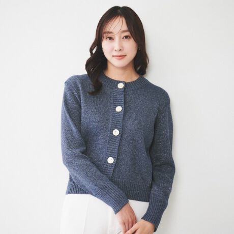 糸の意匠感を活かしたシンプルでコンパクトめなこの時期に合う中肉のカーデです。