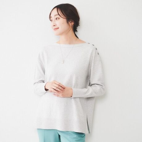 【洗える体型カバー】ボートネック肩ボタンニット