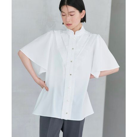 ミニフリルを施したすっきりとしたスタンドカラー。
