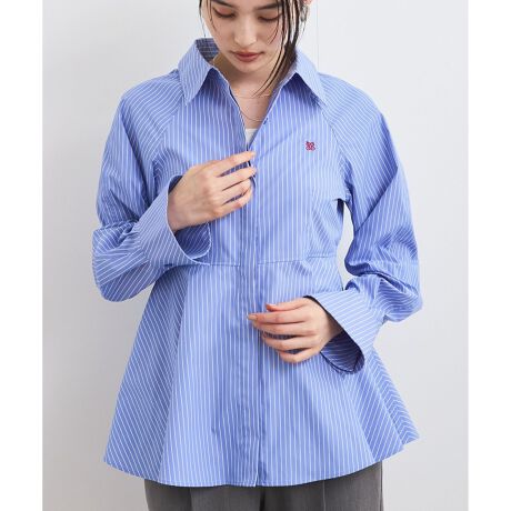 ウエストマークのペプラム切替が女性らしさ引き立つシャツブラウス。