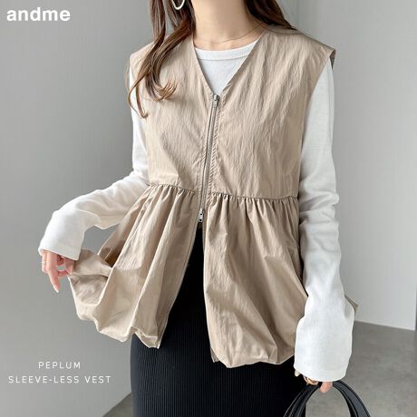 Vネック ペプラム バルーン ジップ ベスト