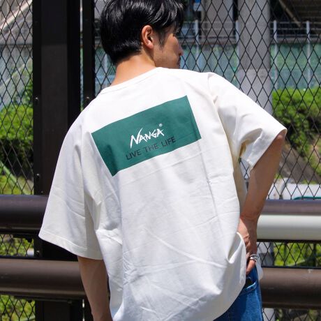 【NANGA×GLOSTER】別注 ボックスロゴ バックプリント ラグランTシャツ