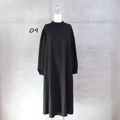 袖に施したピンタックのワンピース。スッキリとしたシルエットに別布使いがさりげないアクセントになっています。
