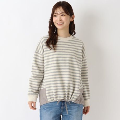 裏毛ボーダー 布帛切替プルオーバー