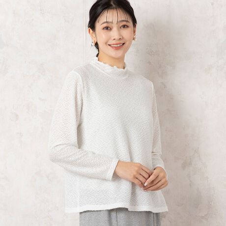 【洗える・日本製】シャーリングジャカード カットソー