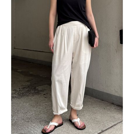 タウンユースはもちろん、おうち時間も快適に過ごせるテーパードパンツ。
