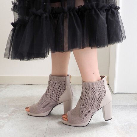 昨年人気だったストレッチブーツサンダルがリニューアル。今年はラメ糸使いとメッシュ加工で夏まで履ける一足に進化しました。オープントゥと通気性の良いメッシュニットで蒸れにくく、暑い時季も快適です。