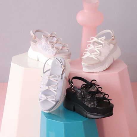 [26春夏新色あり]厚底グリッターリボンサンダル