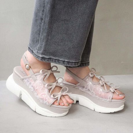 厚底グリッターリボンサンダル